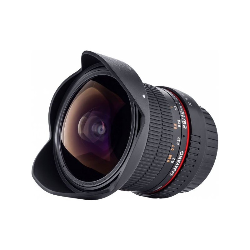 A lente olho de peixe Samyang 12mm é uma lente manual, com foco manual. Oferece um ângulo de visão diagonal de 180 graus em um sensor de quadro completo (formato 24 x 36 mm). Em termos de óptica, é uma das lentes "olho de peixe" mais avançadas.